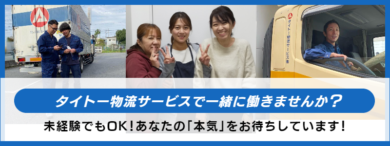 タイトー物流サービスにとって社員は宝物です。社員の皆様が成長できる環境を整え、社員の皆様がご家族に誇れる地域一番の運送会社を目指していきます。